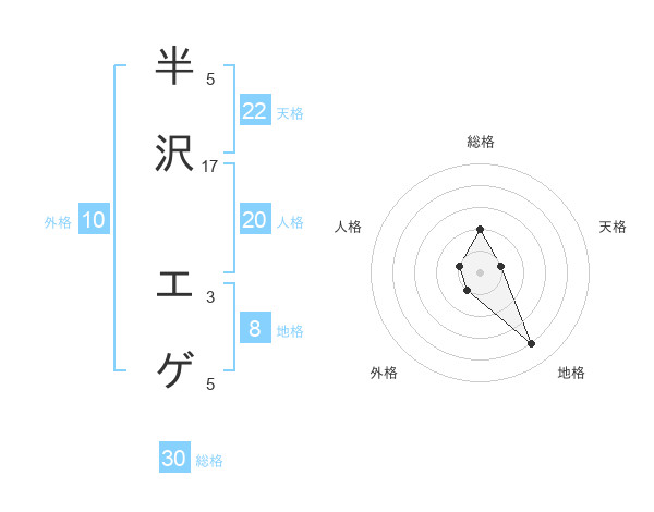 半沢 エゲさんを姓名の画数から五運を鑑定