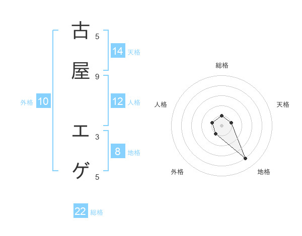 古屋 エゲさんを姓名の画数から五運を鑑定
