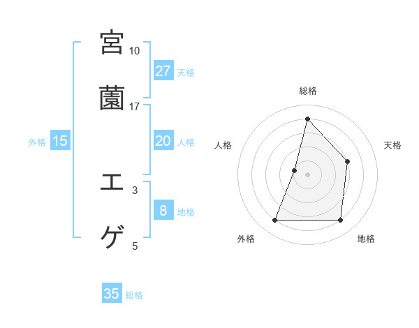 宮薗 エゲさんを姓名の画数から五運を鑑定