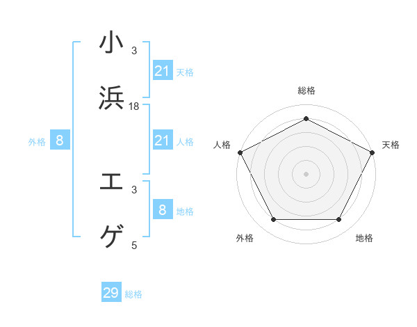 小浜 エゲさんを姓名の画数から五運を鑑定