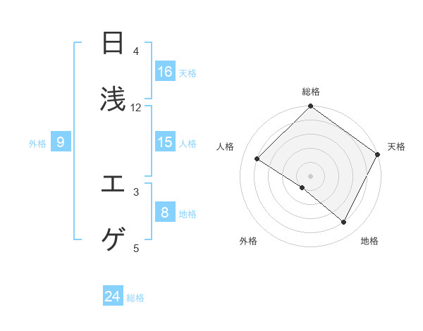 日浅 エゲさんの天格は16画の5点!