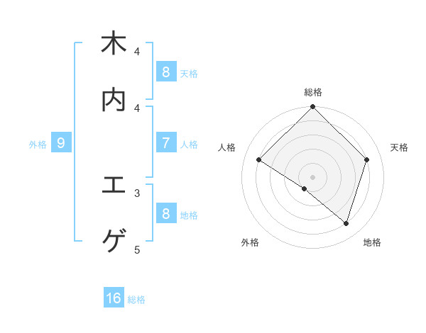 木内 エゲさんの天格は8画の4点!