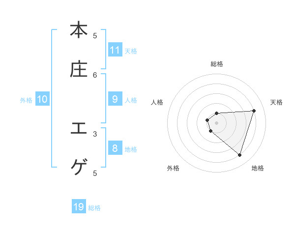本庄 エゲさんを姓名の画数から五運を鑑定