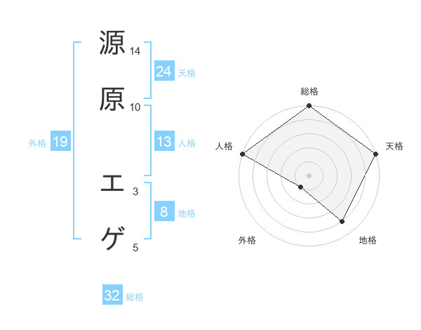 源原 エゲさんの天格は24画の5点!