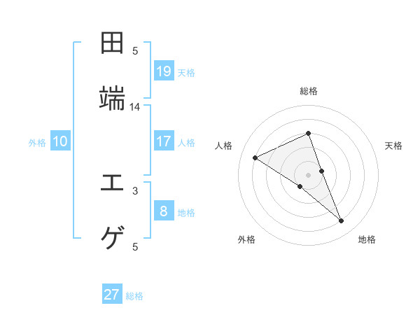 田端 エゲさんの天格は19画の1点!