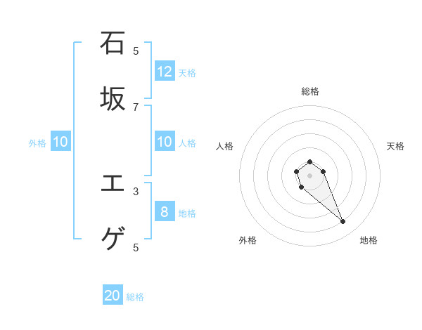 石坂 エゲさんを姓名の画数から五運を鑑定