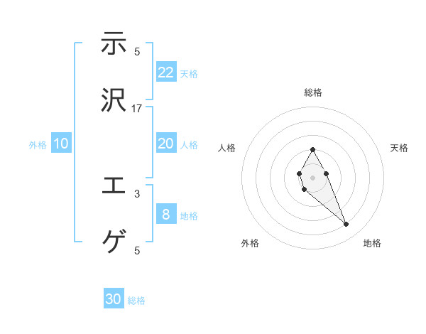 示沢 エゲさんの総格は30画の2点!