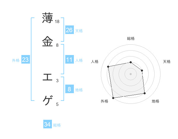 薄金 エゲさんを姓名の画数から五運を鑑定