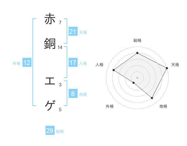 赤銅 エゲさんを姓名の画数から五運を鑑定