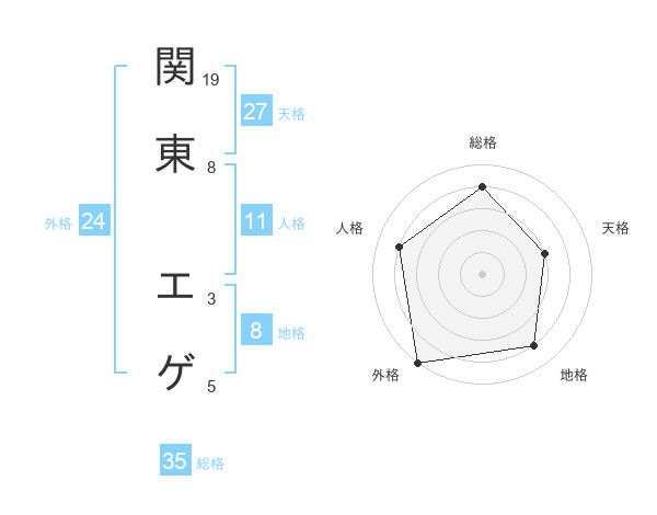 関東 エゲさんの総格は35画の4点!