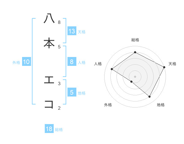 八本 エコさんの天格は13画の5点!