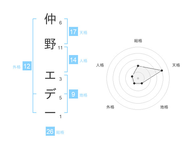 仲野 エデーさんを姓名の画数から五運を鑑定