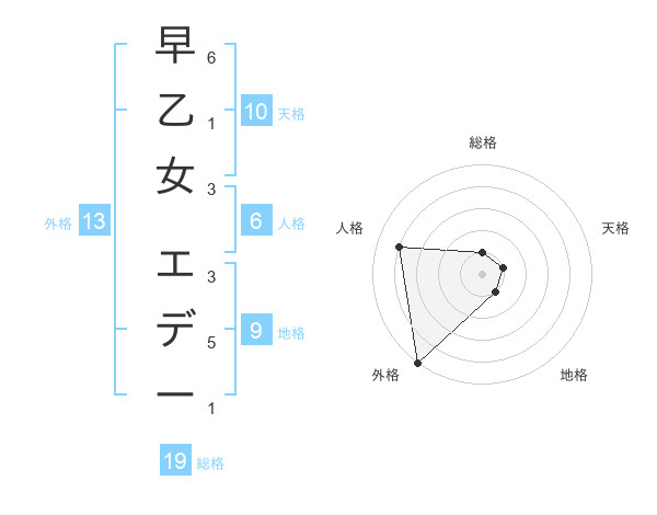 早乙女 エデーさんを姓名の画数から五運を鑑定