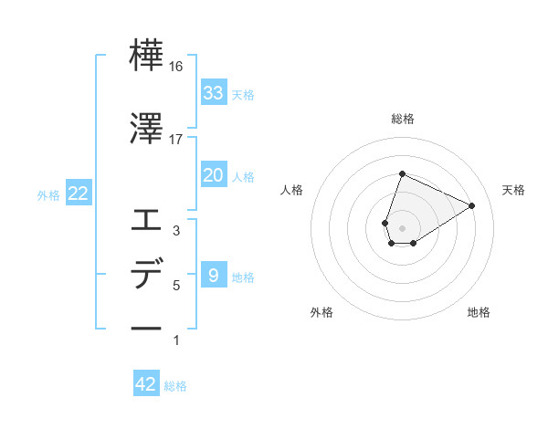 樺澤 エデーさんを姓名の画数から五運を鑑定