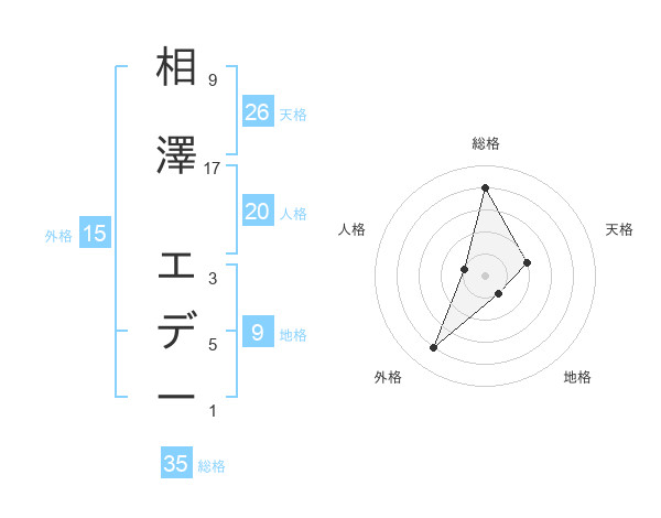 相澤 エデーさんを姓名の画数から五運を鑑定