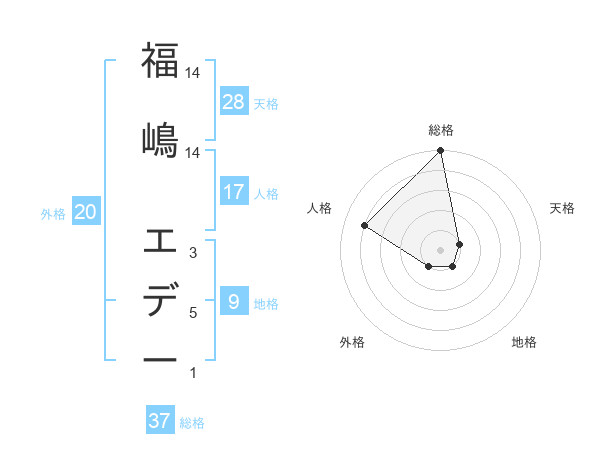 福嶋 エデーさんの総格は37画の5点!