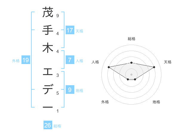 茂手木 エデーさんの総格は26画の2点!