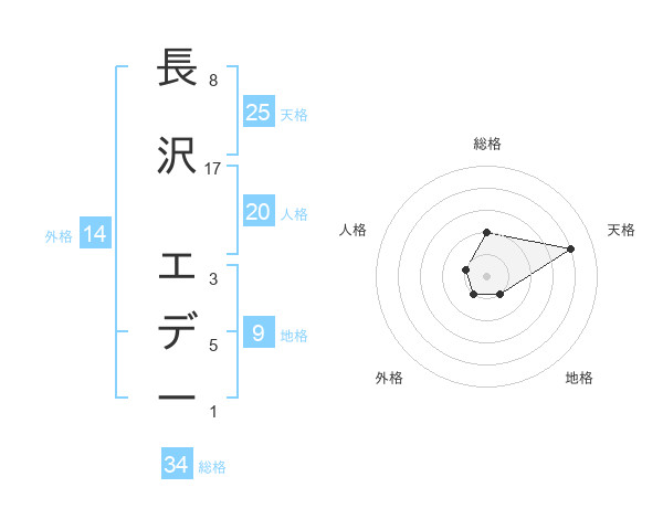 長沢 エデーさんを姓名の画数から五運を鑑定