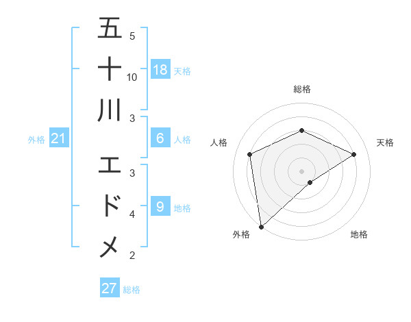 五十川 エドメさんを姓名の画数から五運を鑑定