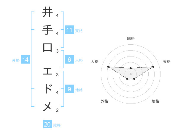 井手口 エドメさんを姓名の画数から五運を鑑定