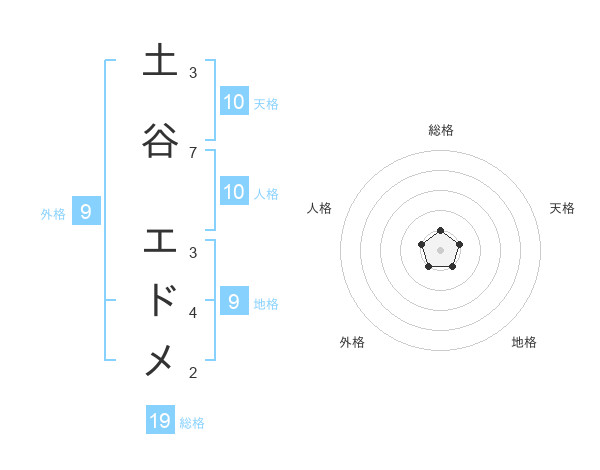 土谷 エドメさんを姓名の画数から五運を鑑定