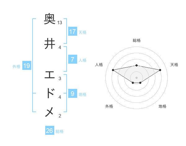 奥井 エドメさんを姓名の画数から五運を鑑定