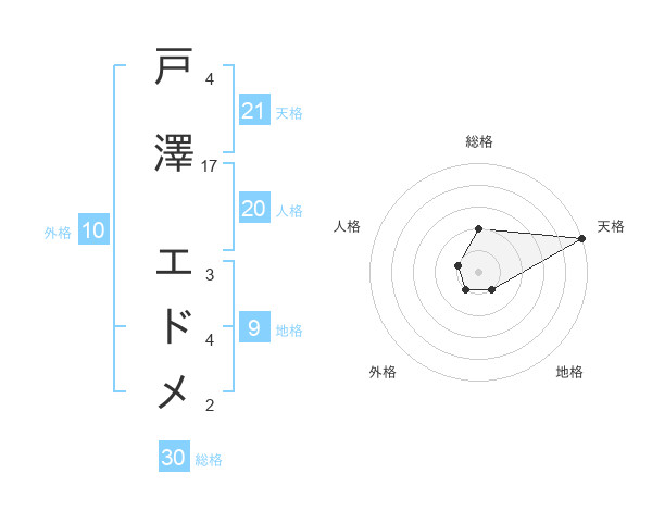 戸澤 エドメさんの天格は21画の5点!