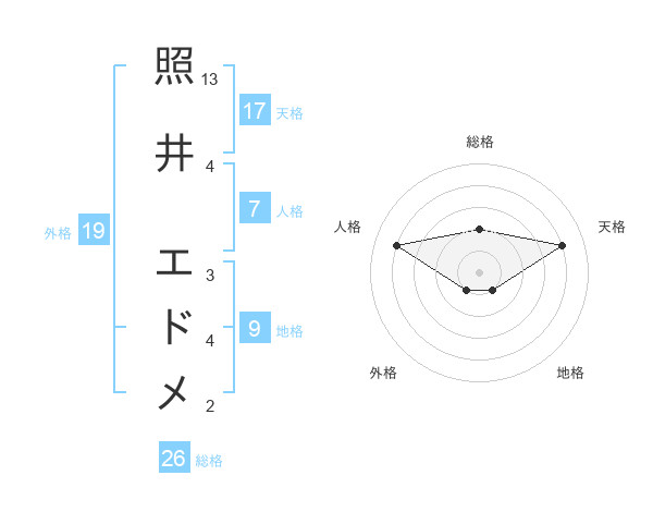 照井 エドメさんの天格は17画の4点!