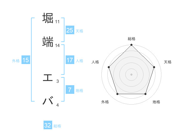 堀端 エバさんの総格は32画の5点!