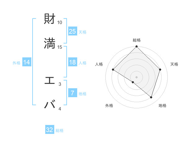 財満 エバさんの天格は25画の4点!