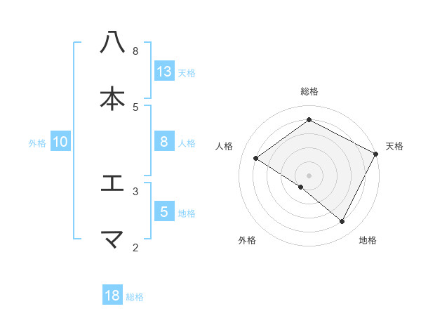 八本 エマさんの天格は13画の5点!