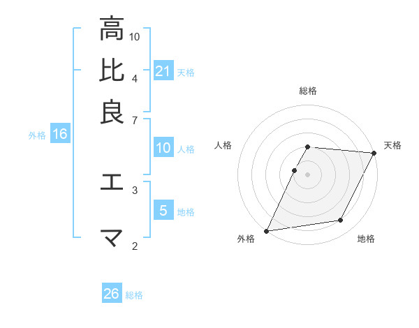 高比良 エマさんの天格は21画の5点!
