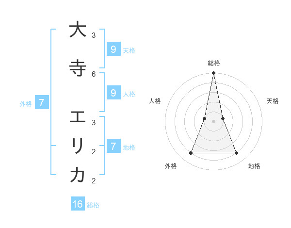 大寺 エリカさんの総格は16画の5点!