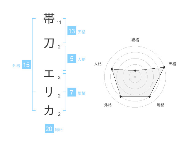 帯刀 エリカさんを姓名の画数から五運を鑑定