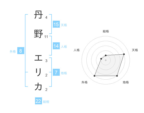 丹野 エリカさんを姓名の画数から五運を鑑定