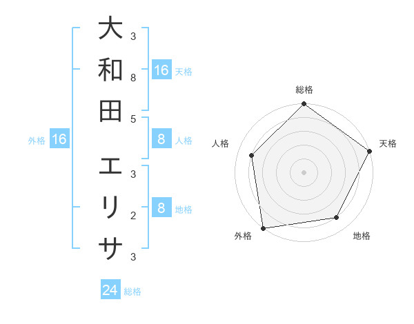 大和田 エリサさんの天格は16画の5点