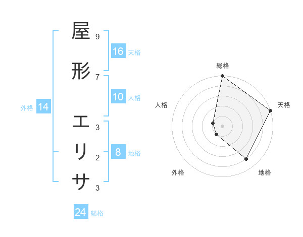 屋形 エリサさんの天格は16画の5点!