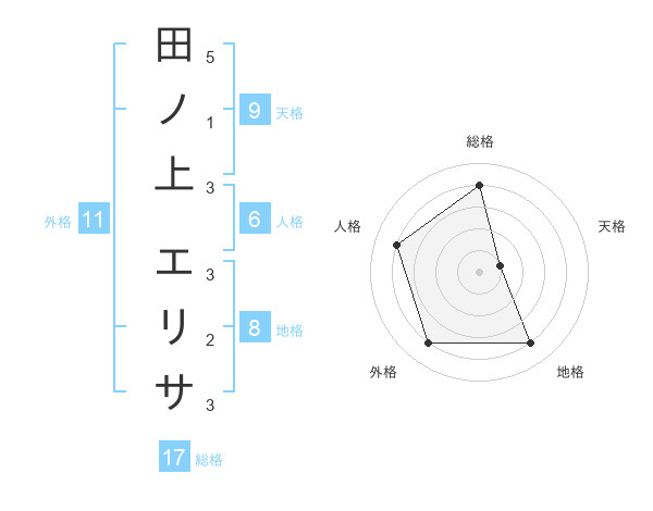 田ノ上 エリサさんを姓名の画数から五運を鑑定