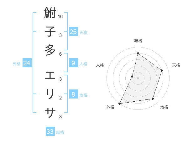 鮒子多 エリサさんを姓名の画数から五運を鑑定