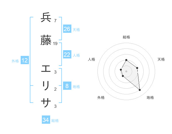 兵藤 エリサさんを姓名の画数から五運を鑑定