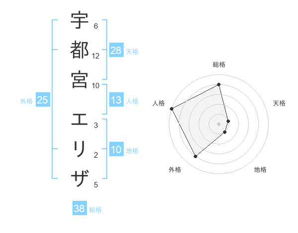 宇都宮 エリザさんの総格は38画の4点!