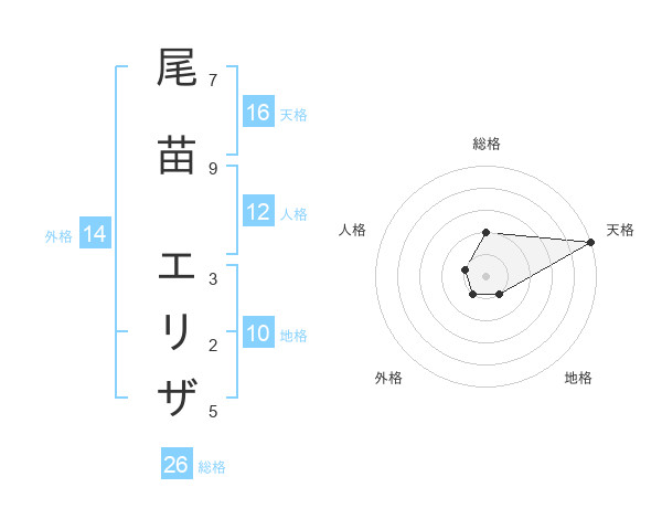 尾苗 エリザさんを姓名の画数から五運を鑑定