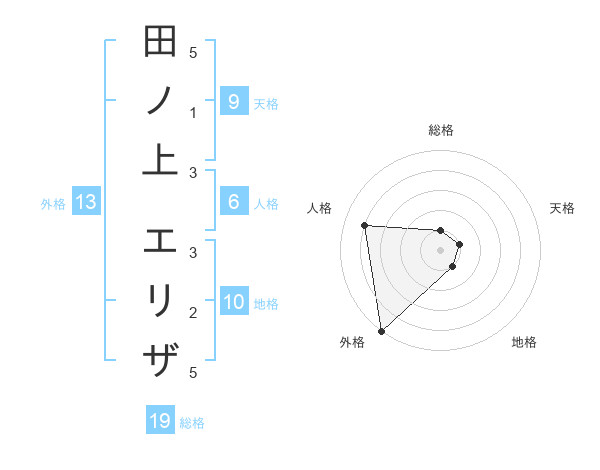 田ノ上 エリザさんを姓名の画数から五運を鑑定