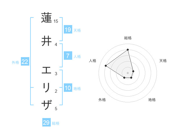 蓮井 エリザさんの外格は22画の1点!
