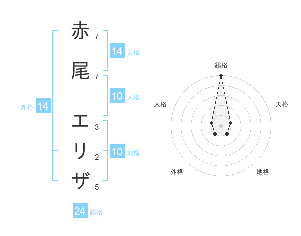 赤尾 エリザさんを姓名の画数から五運を鑑定