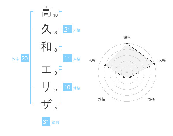 高久和 エリザさんの天格は21画の5点!