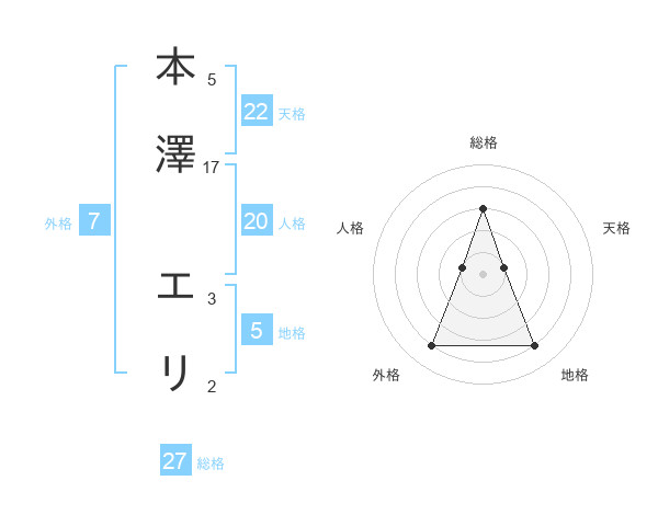 本澤 エリさんの天格は22画の1点!
