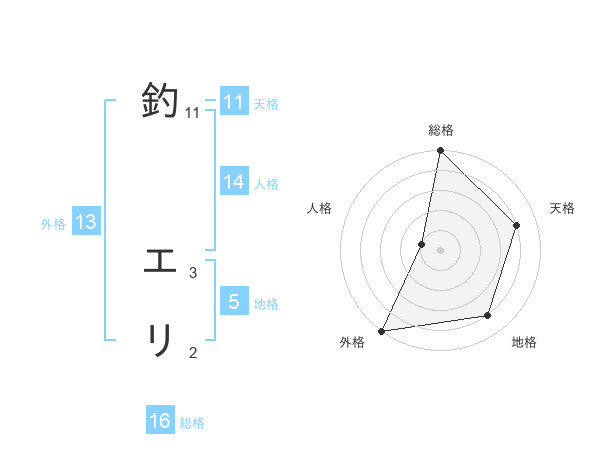 釣 エリさんの総格は16画の5点!