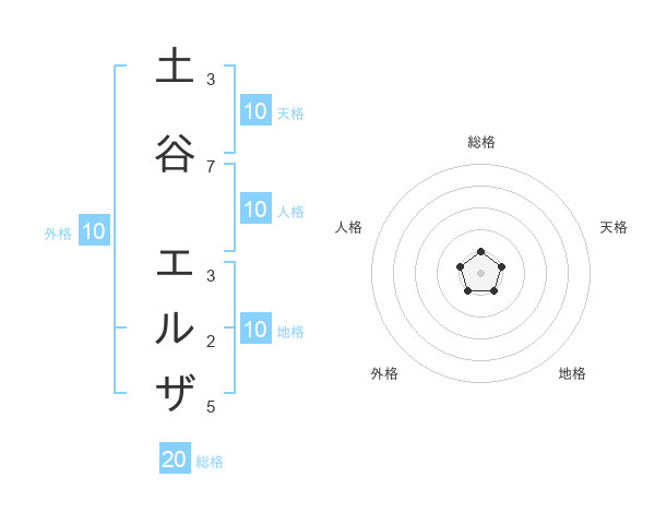 土谷 エルザさんを姓名の画数から五運を鑑定