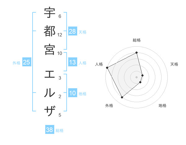 宇都宮 エルザさんを姓名の画数から五運を鑑定